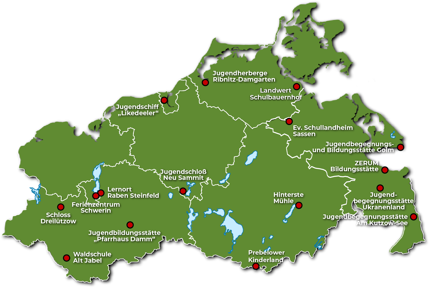 • Sechszehn .Schullandheime in Mecklenburg-Vorpommern